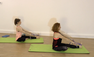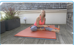 Ceri 2 This routine is a great combination of standing and floor work with use of the over ball and stretch strap. It’s got a lovely flow to it with some nice new movements and stretches.